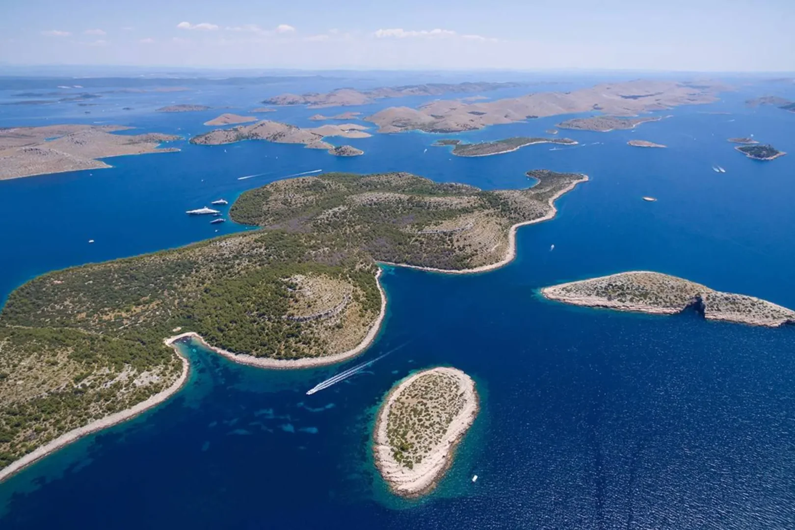 Set out on a private speedboat journey through the breathtaking Kornati Islands National Park, a protected archipelago of 89 uninhabited islands, islets, and reefs. Known for its dramatic cliffs and untouched serenity, this region is a favorite among boaters seeking natural beauty and peaceful seascapes.