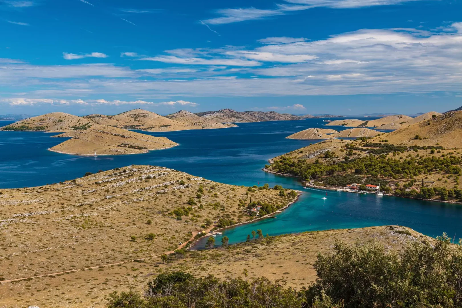 Cruise past Murter Island, connected to the mainland by bridge, and weave through the Kornati labyrinth as your skipper highlights notable bays and rocky outcrops. Stop at Levrnaka Island, home to Lojena Bay, where a rare sandy beach invites you to swim in the crystal-clear Adriatic.